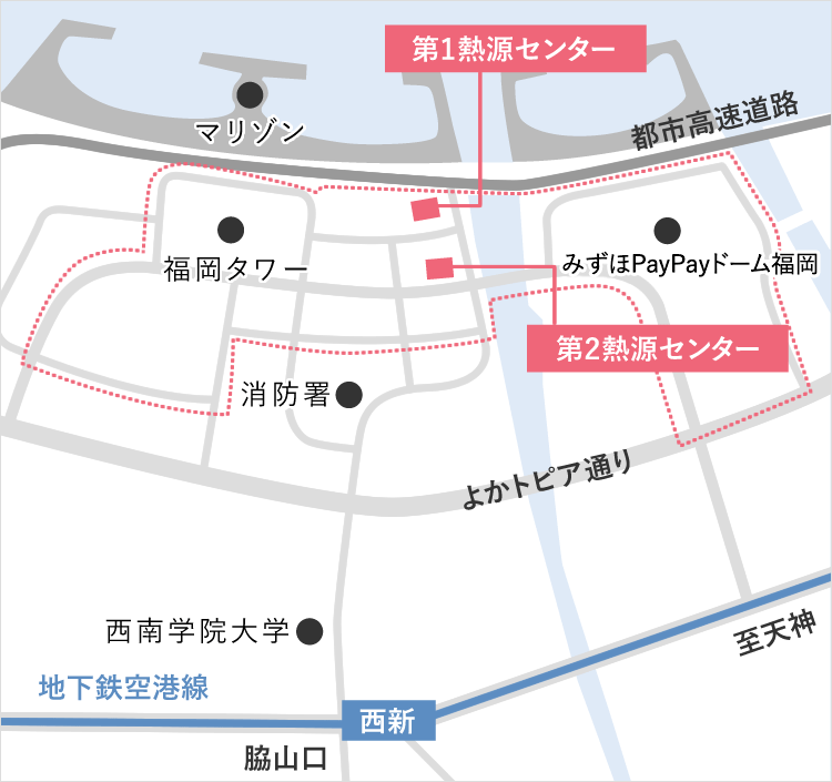 | 供給地域面積 | 435千m2(ももち地域:265千m2、地行地域:170千m2) | |||