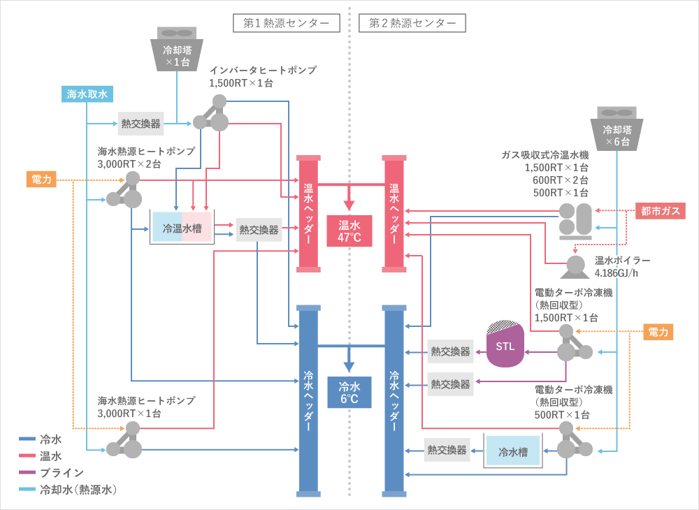 | 供給開始 | 1993(平成5)年4月1日(第2熱源センター竣工) 1995(平成7)年7月1日(第1熱源センター竣工) |